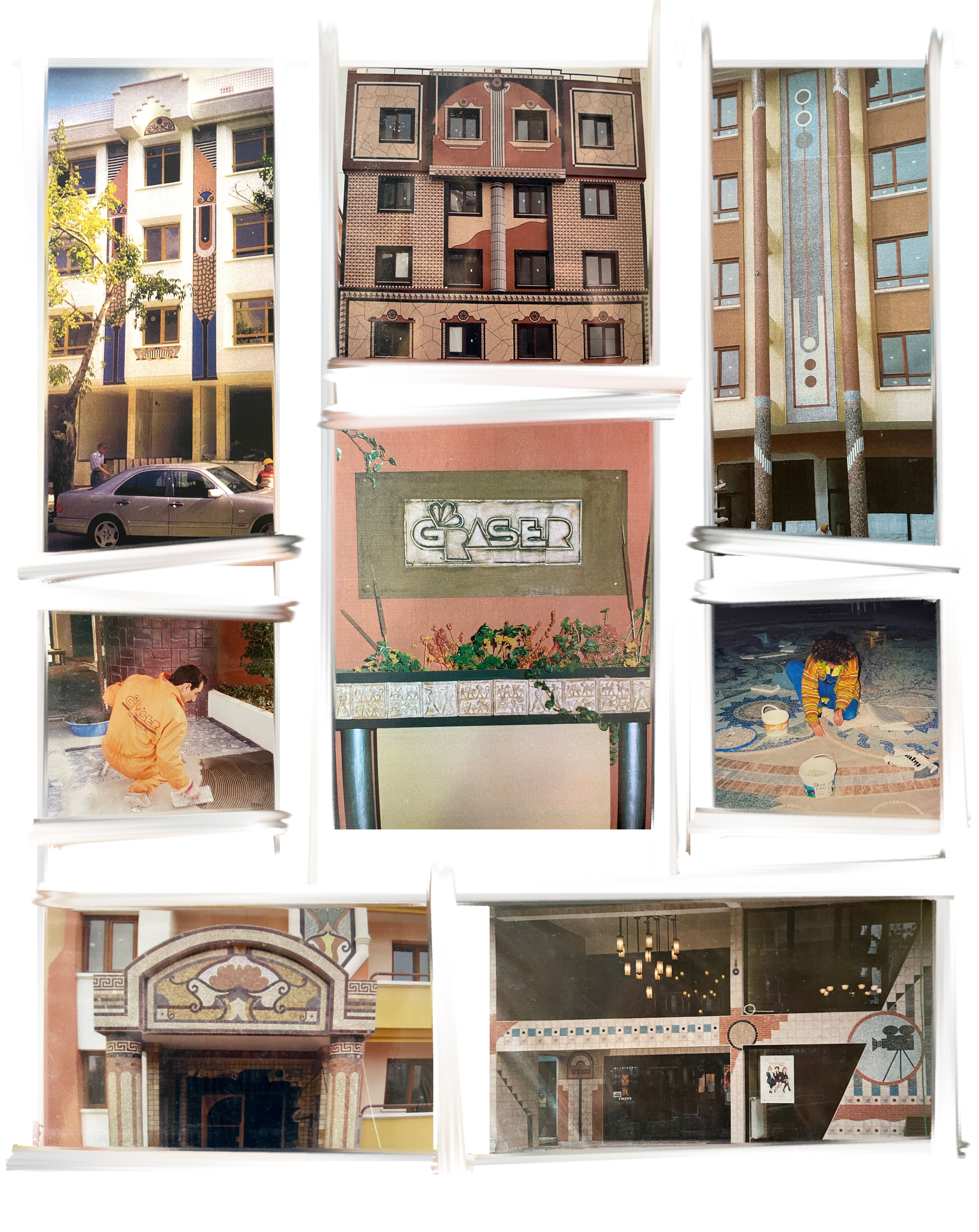 Seramik,doğaltaş,füzyon cam materyalleri kullanarak mozaik sanatının özgün örnekleri cephelerde uygulanmıştır. 500 den fazla projede her cephe için farklı tasarımlar kullanarak sektörde bir ilk'e imza atmıştır.